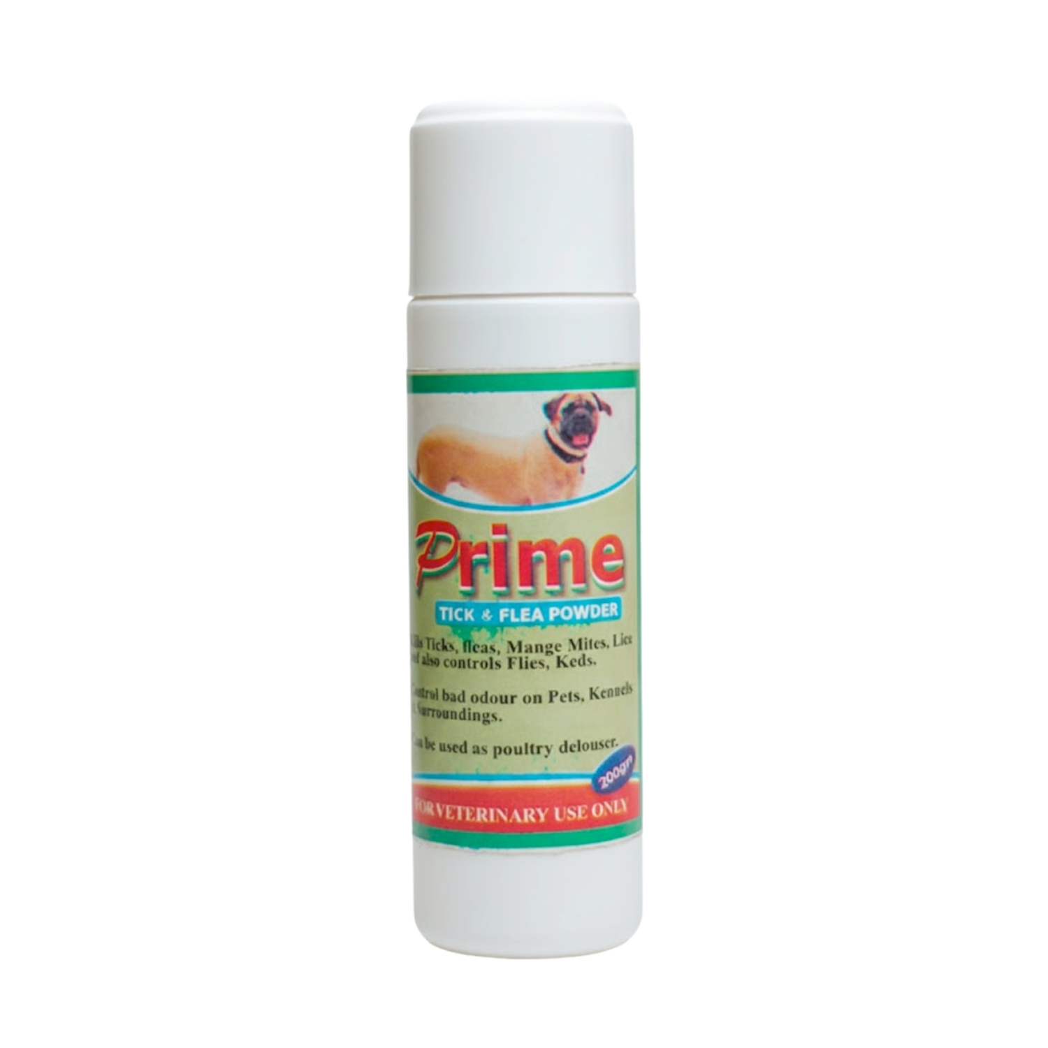 Protect your pets and your home with Prime Tick & Flea Powder, a versatile solution for managing external parasites and maintaining kennel hygiene. Formulated for veterinary use, this 200g powder provides a wide range of protection against the most common pests that affect dogs and poultry.